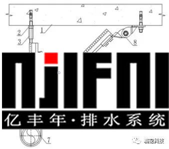 1- 結構體;2-抗震錨栓;3-六角連接器;4-C型槽鋼 5-長螺桿;6-加勁裝置;7-管道;8-抗震連接構件 |