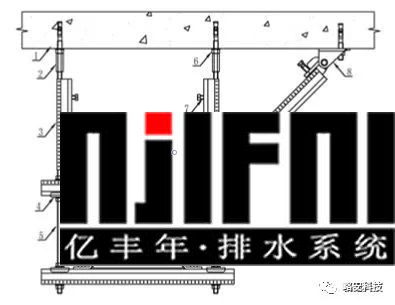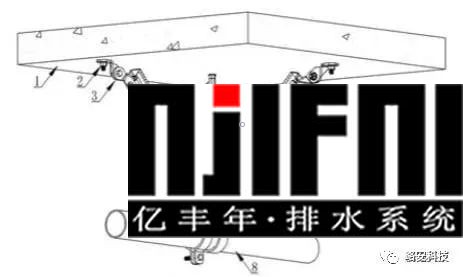 2.單管雙向抗震支吊架構造形式 | 1-結構體;2-抗震錨栓;3-抗震連接構件;4-C型槽鋼 5-六角連接器;6-長螺桿;7-加勁裝置;8-管道 |